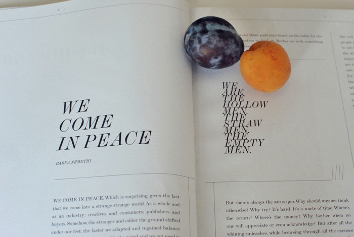 I love what Barna wrote in the editor’s letter. Modesty in creative people is a very rare quality!