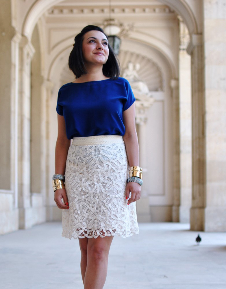 You look so stunning I can’t even find my words: that skirt with the blue blouse and those silver-gold bracelets look like a million bucks. And yes we really have to be our own superheroes (that doesn’t mean I’m going to go there (the cooking area), I’m not ready yet.:)